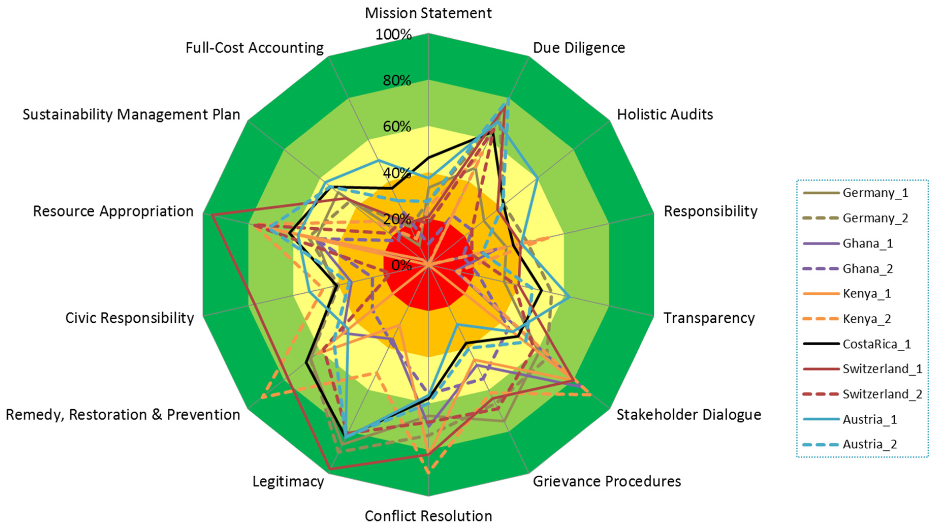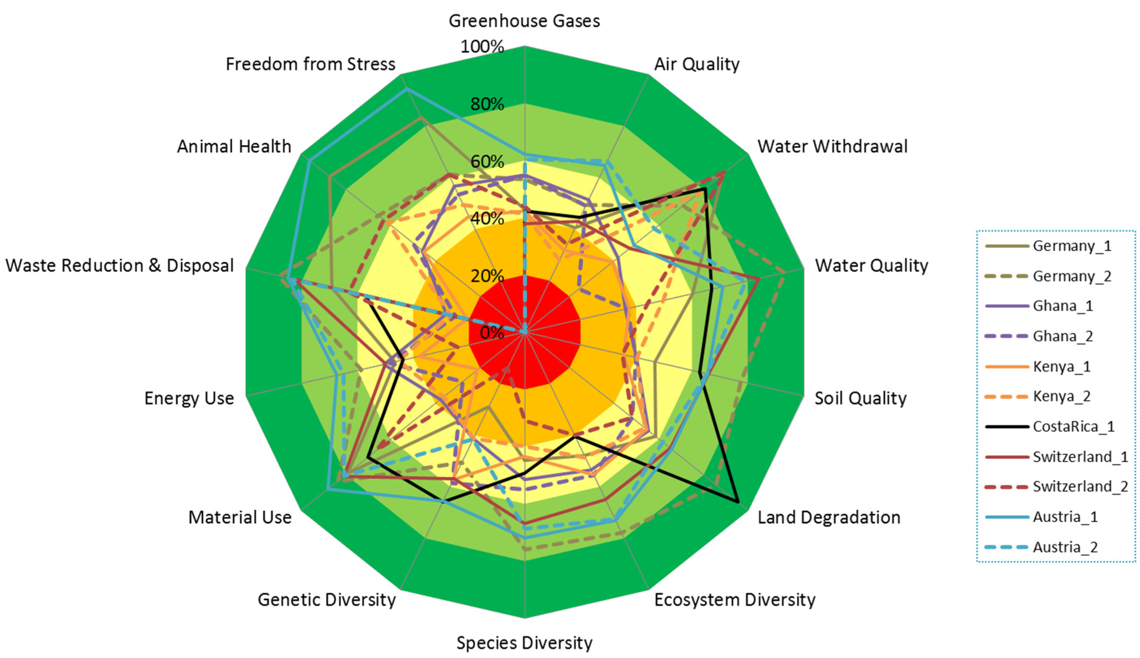 The authors are grateful to Gerling Foundation and Ekhaga Foundation for financially supporting this research work. Furthermore, we are grateful to the following experts for supporting this study with their expertise: Hippolyte Affognon, Paul van den Berge, Richard Bircher, Joseph Clottey, Irene Egyir, Andreas Gattinger, Jan Grenz, Anja Heidenreich, Stefan Hörtenhuber, Beate Huber, Julia Jawtusch, Matthias Meier, John Ndugu, Bernadette Oehen, Lukas Pfiffner, Anet Spengler, Moritz Teriete, Christian Thalmann, Axel Wirz. We are grateful to FAO, in particular Nadia El-Hage Scialabba and Alexander Müller, for fostering the SAFA process, providing valuable inputs and discussing methodological aspects related to SMART and SAFA. Furthermore, we thank the farmers who have been willing to participate in a SMART Audit being performed on their farms and to share their data anonymously. We furthermore thank the two anonymous reviewers whose comments improved comprehensibility of the paper.