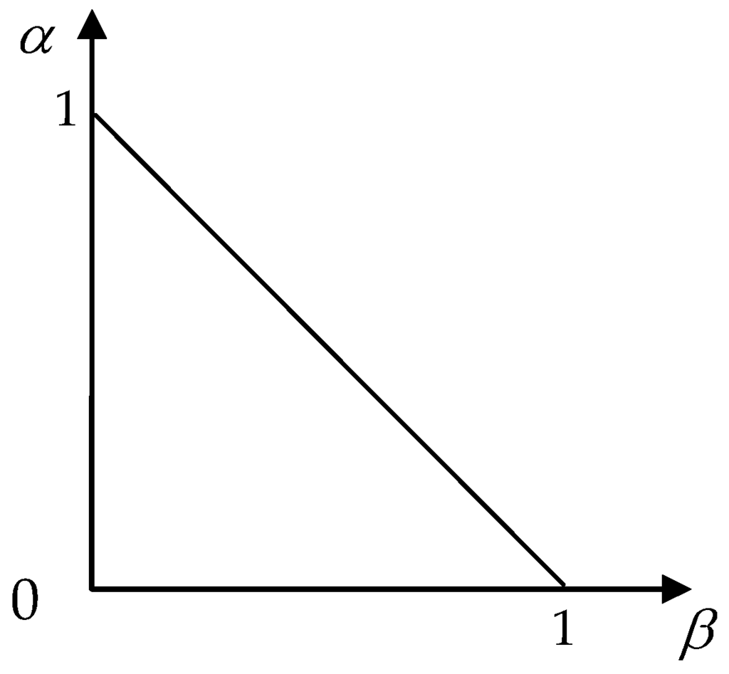 The relationships between and are exhibited graphically in Figure 1. The two coefficients interacted reversely whilst both the coefficients can assume any value between 0 and 1.