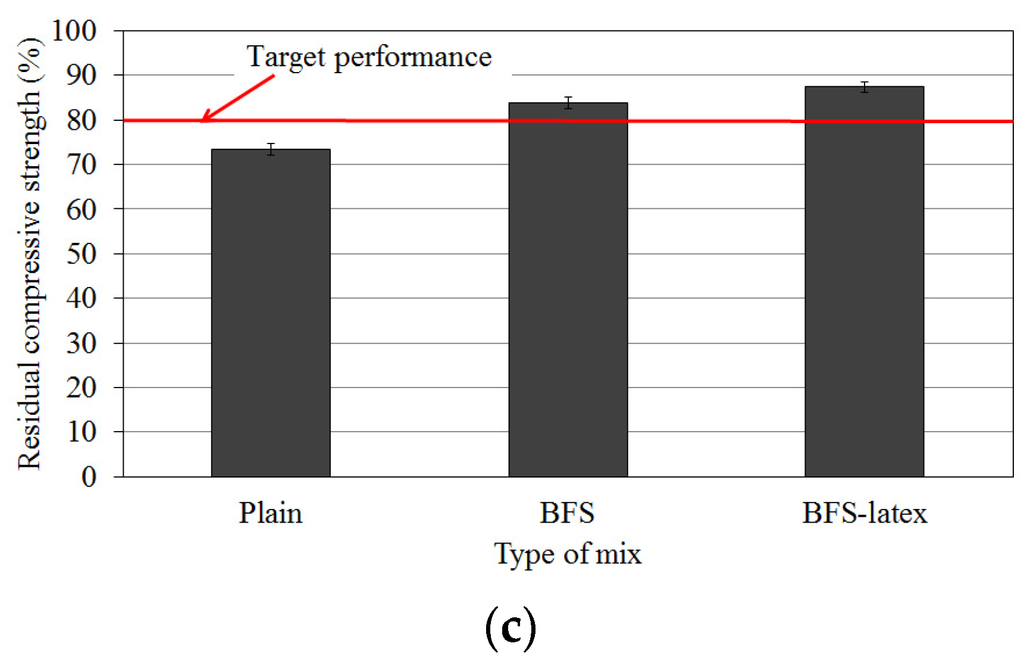 10]. The bottom ash from thermoelectric power plants, which is usually discarded, was used for porous vegetation concrete. Its mechanical performance demonstrated that the void ratio and water permeability increased with increasing the mixing ratio of bottom ash. The strength of the concrete tended to decrease as the mixing ratio of the bottom ash aggregate increased. However, the strength could be improved by the addition of polymers, e.g., when coal ash was used in porous vegetation concrete for secondary products and paving materials [
