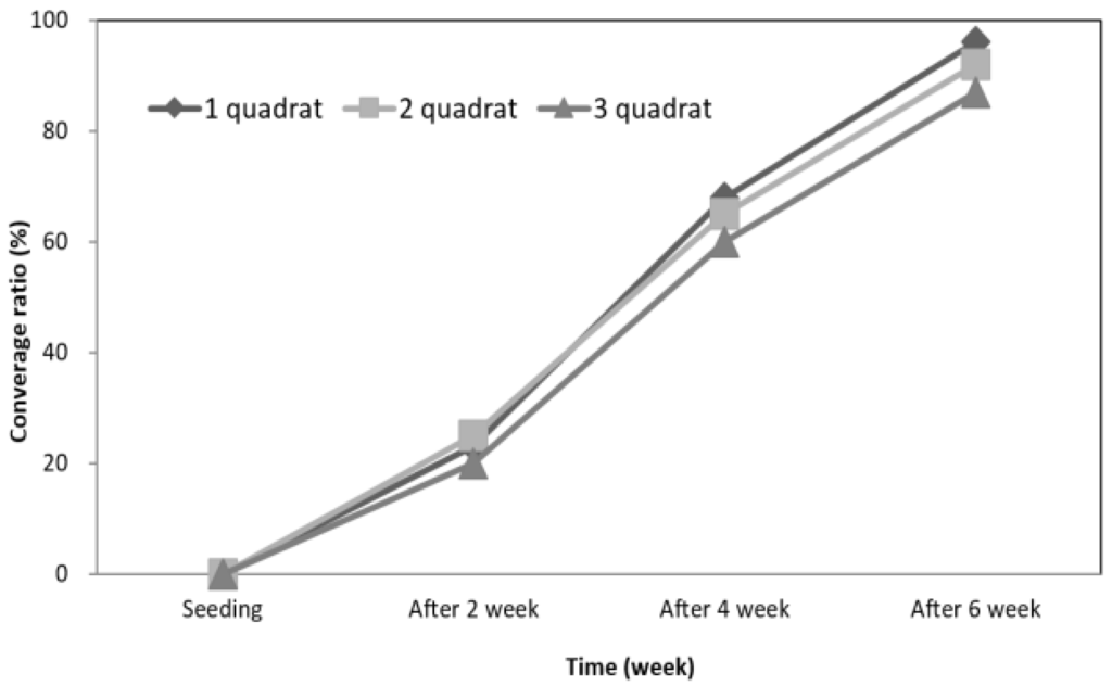 13]. Concerning the vegetation on the porous vegetation concrete block, the growth rate of lawn was greater than chamssari and bisuri [