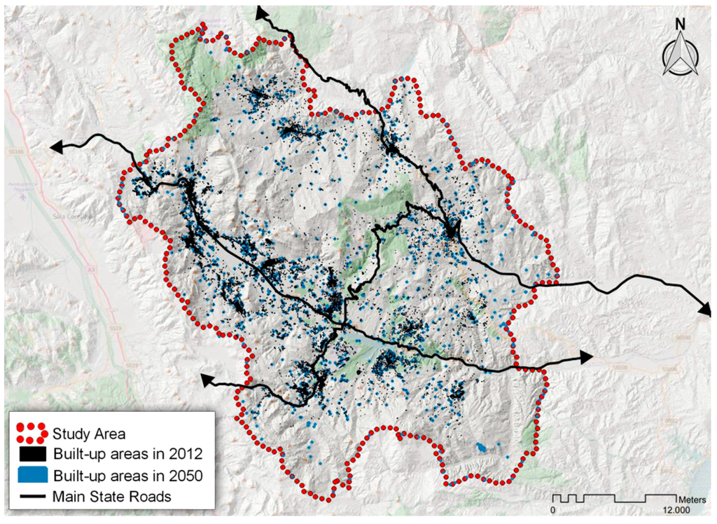 Results of urban growth forecast up to 2050 confirm the evolution trend observed from past data for Valley of Agri (Figure 9).