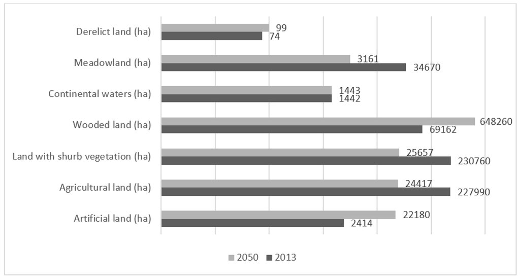 Landuse classes comparison between 2013 and 2050.