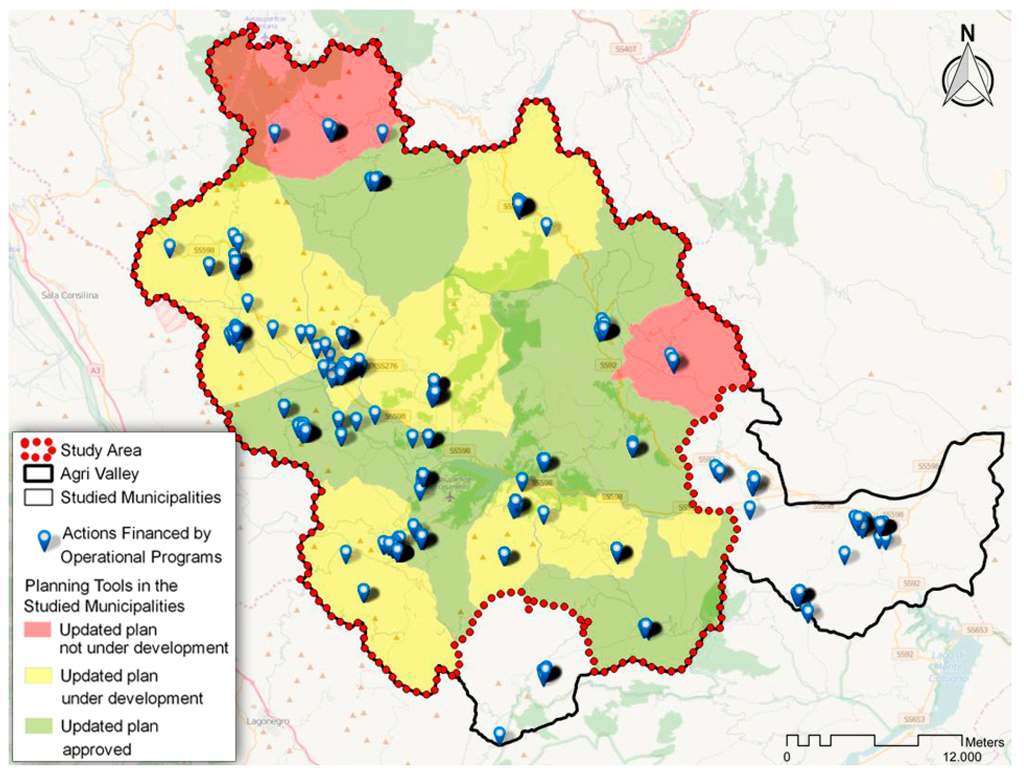 Geolocation of actions financed by Operational Programs and state of urban planning tools within the studied Municipalities.