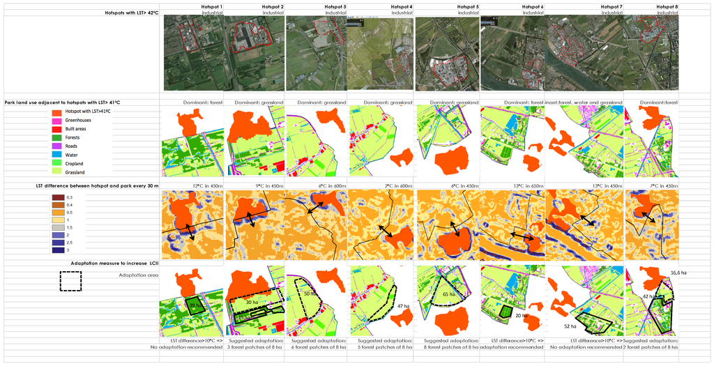 Diagnosis and adaptation design for hotspots with an LST > 42 °C [54].