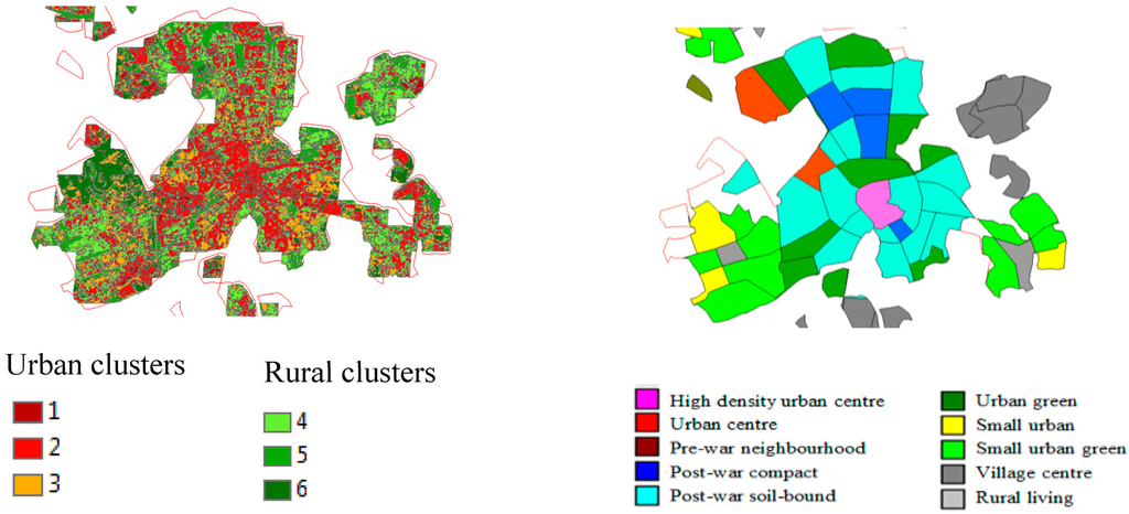 Compilation of LST-related maps for the Eindhoven metropolitan area: surface cover clustering and “urban living environment” categories [56].