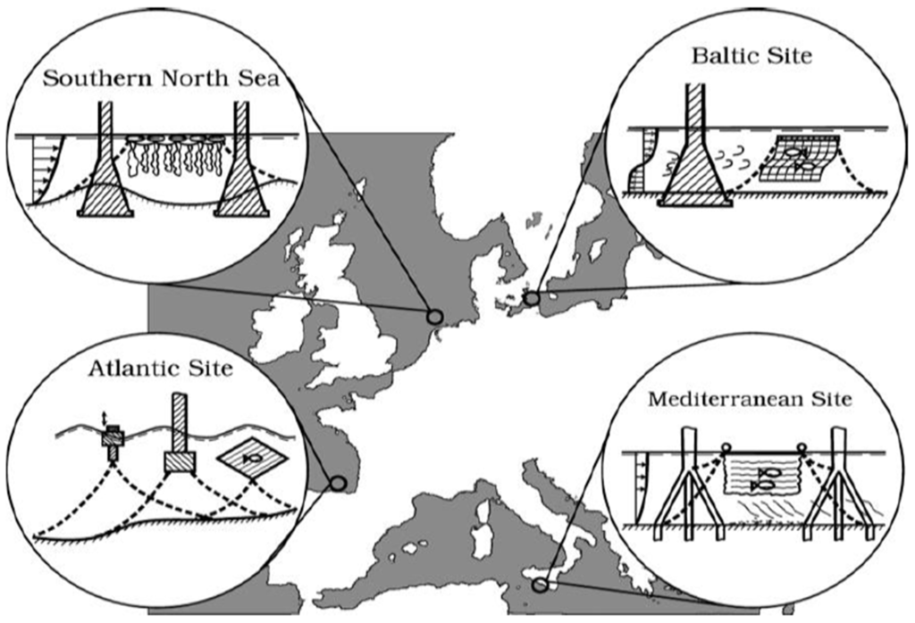 - The Baltic Sea—a typical estuarine area with fresh water from rivers and salt water. The design discussed is a combination of wind turbines and offshore aquaculture using floating fish cages with trout/salmon production [6].