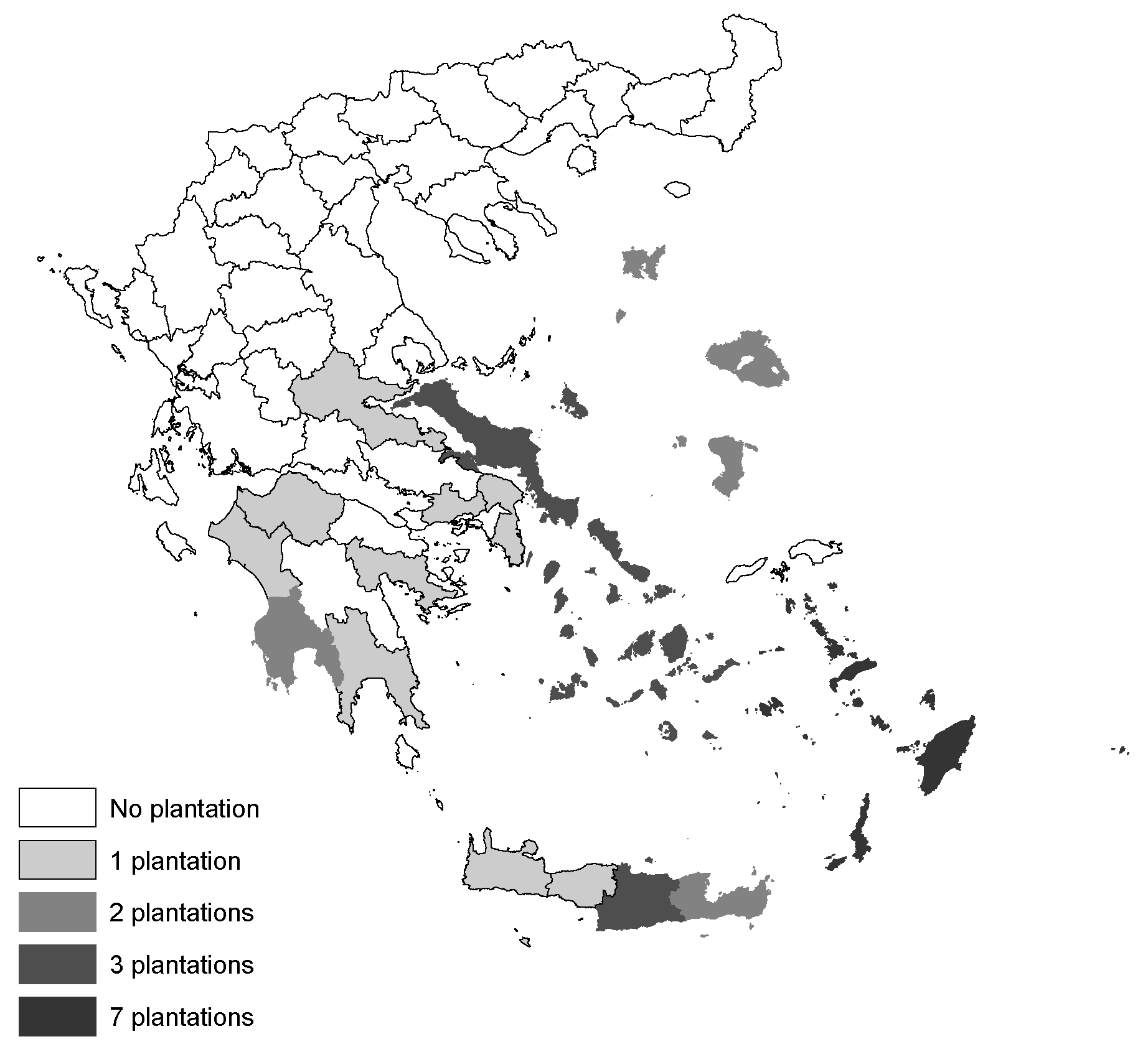 Data used in this analysis were obtained by personal interviews with 33 Aloe vera producers in several areas in Greece, particularly in the Aegean islands, Peloponnesus, and Crete (Figure 1), using a detailed socioeconomic questionnaire. Organic Aloe vera farmers provide detailed historical data on the establishment cost of an Aloe vera crop as well as the annual costs of the crop. However, in the revenues part, because the vast majority of the farmers have distributed very minimal quantities in the markets, many of them, only report their expectations.