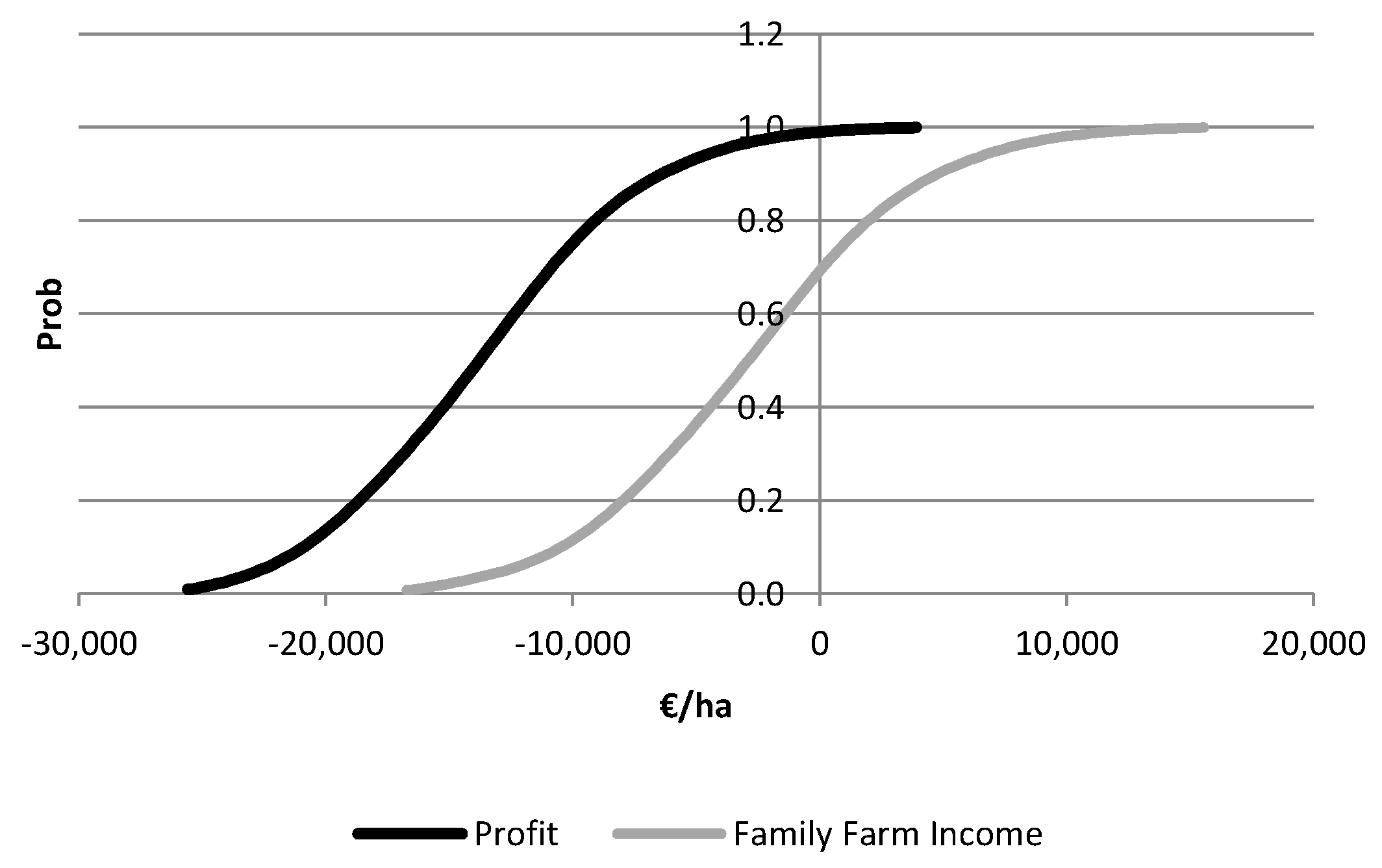 The results of the analysis indicate that the effects are more severe on the net profit of the farms. In the case of 70% market absorption, the average value is negative, whereas the possibilities for negative NP values increase to 44.18%, indicating a very risky economic activity. The effects on the FFI are less severe but also important. A 70% market absorption of the leaves affects, by more than 50%, the expected level of FFI, whereas the possibilities of a negative value increases to 20%.