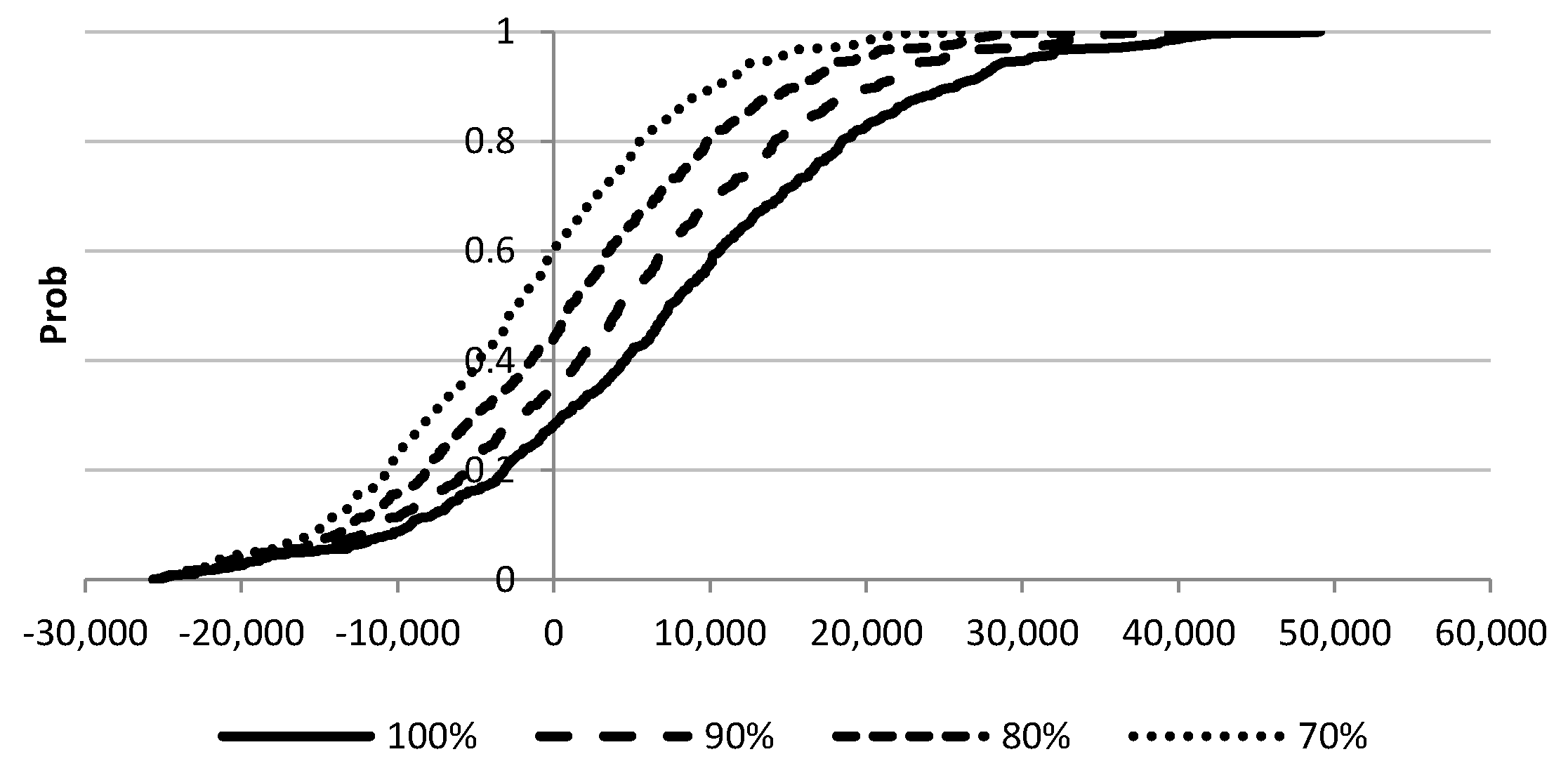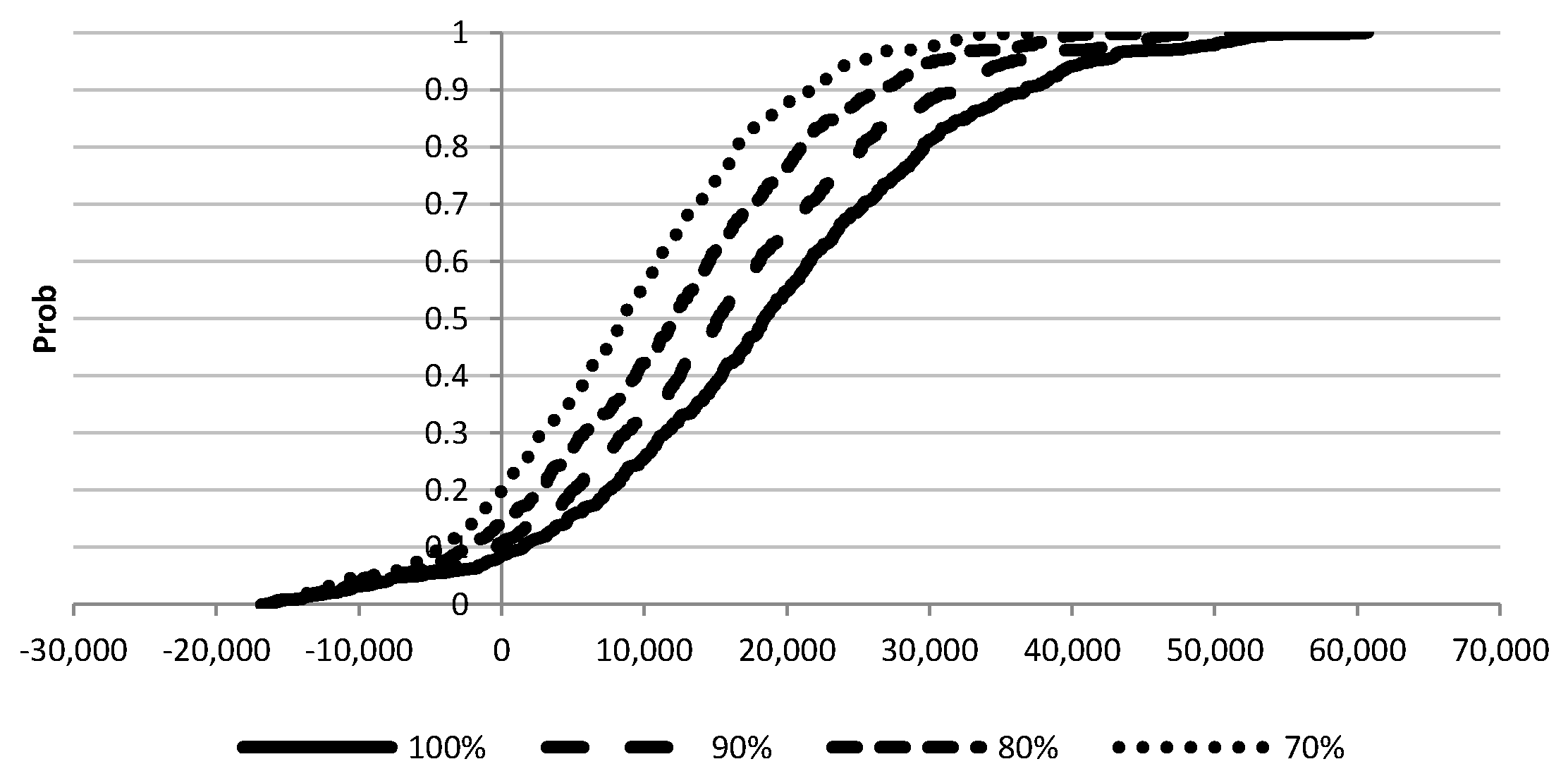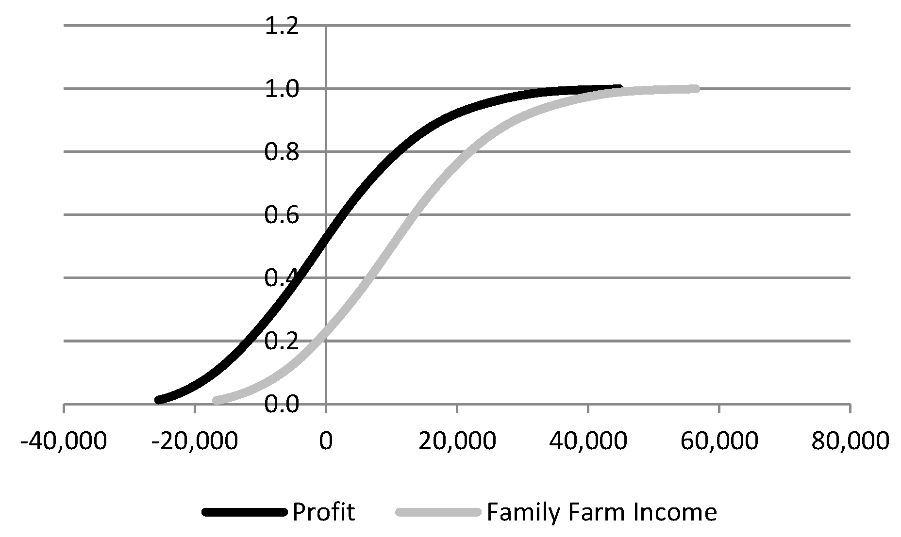 The level of risk aversion is measured by the Absolute Risk Aversion Coefficients (ARAC). Generally, there are no specific ranges for ARACs. For example, according to Thomas [36], that range should be from −0.0005 to +0.005. However, it appears more appropriate to normalize the range of ARAC against wealth. The relation between absolute and relative risk aversion is: ra(w) = rr(w)/w, where rr(w) is the relative risk aversion coefficient with respect to wealth (w) [30]. Anderson and Dillon [37] proposed a general classification of degrees of risk aversion, based on rr(w), in the range of 0.5 (hardly risk averse) to approximately 4 (extremely risk averse).