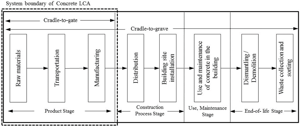 System Boundary for Concrete Life Cycle Assessment (LCA).