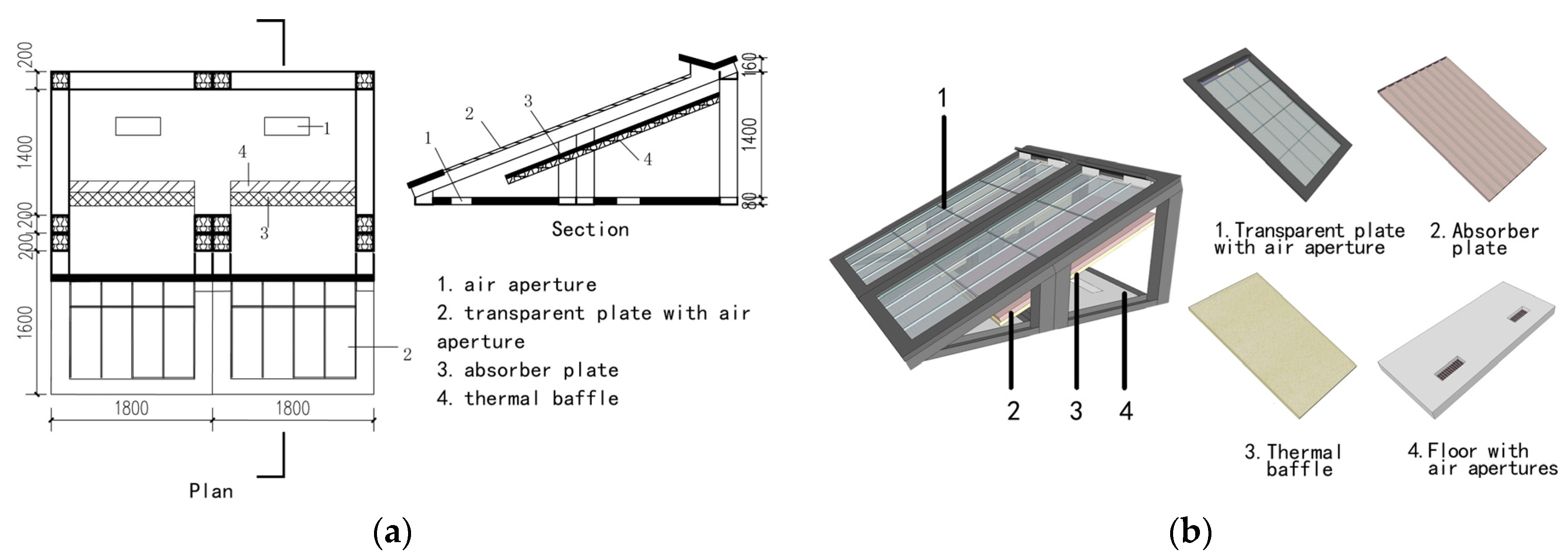 (a) Size of solar chimney block; (b) components of the chimney block.