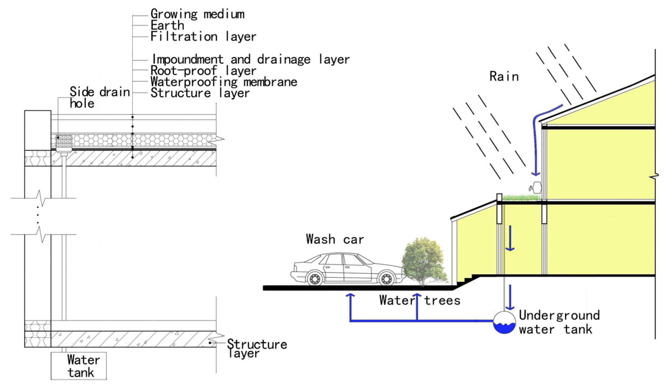 Rainwater harvesting technology refers to the accumulation and deposition of rainwater for the purpose of reusing on site, which will provide an independent water supply resolving the shortage of water resources in the western regions of China. Taking the impounding planting roof block with rainwater collection and purification system as an example, a block with a rainwater “collection-purification-reuse” system is installed in the factory. The treated rainwater is stored in a water tank, which is built on the foundation block, and can be reused for gardens, livestock, irrigation, and domestic use. Application of rainwater harvesting in the block-based construction system provides a substantial benefit and sustainable outcomes for both water supply and wastewater subsystems by relieving the pressure of clean water distribution [29].