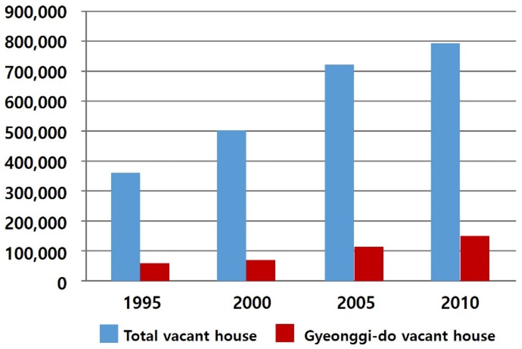 - Nam, J. Vacant House Is a Local Resources, Issues and Diagnosis; Gyeonggi Research Institute: Seoul, Korea, 2016; pp. 5–12. [Google Scholar]