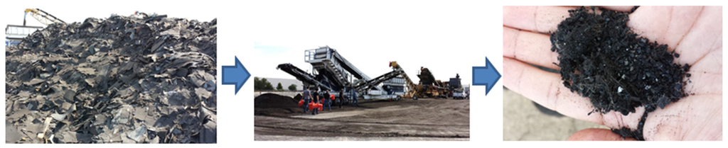 - Krivit, D. Recycling of Tear-off Shingles: Best Practices Guide; Construction Materials Recycling Association: Aurora, IL, USA, 2007. [Google Scholar]