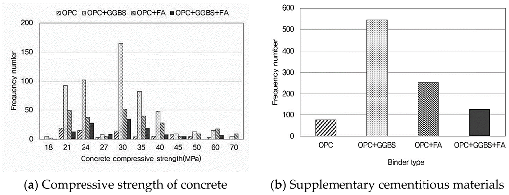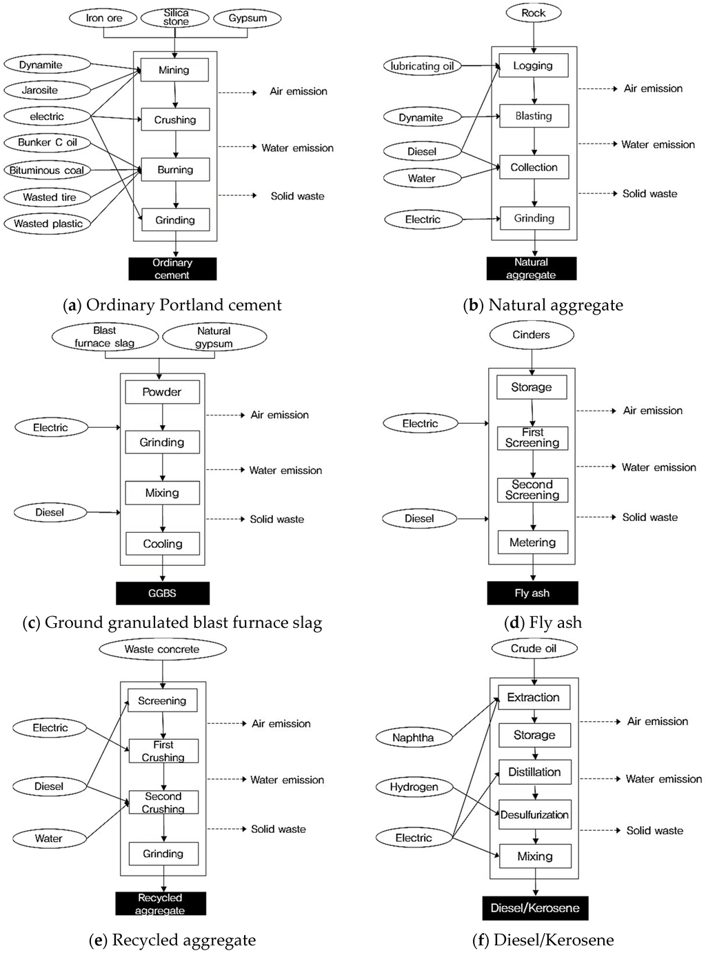 - Yang, K.H.; Seo, E.A.; Jung, Y.B.; Tae, S.H. Effect of Ground Granulated Blast-Furnace Slag on Life-Cycle Environmental Impact of Concrete. Korea Concr. Inst. 2014, 26, 13–21. [Google Scholar] [CrossRef]