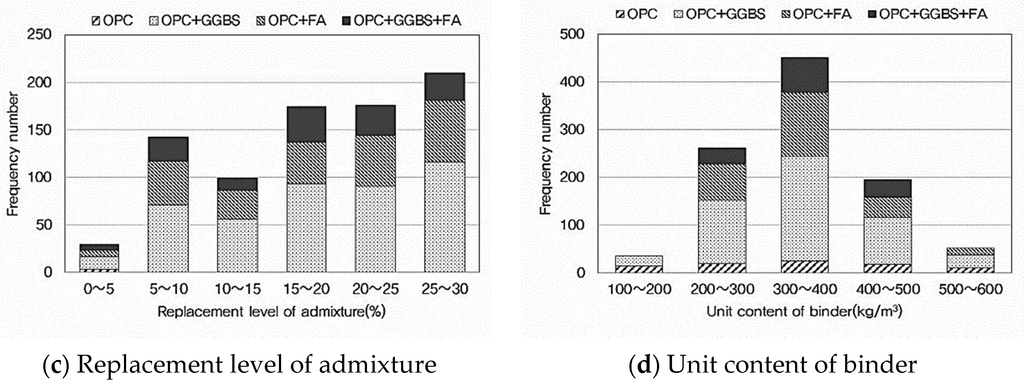 - Taehyoung, K.; Sungho, T.; Seongjun, R. Assessment of the CO2 emission and cost reduction performance of a low-carbon-emission concrete mix design using an optimal mix design system. Renew. Sustain. Energy Rev. 2013, 25, 729–741. [Google Scholar]