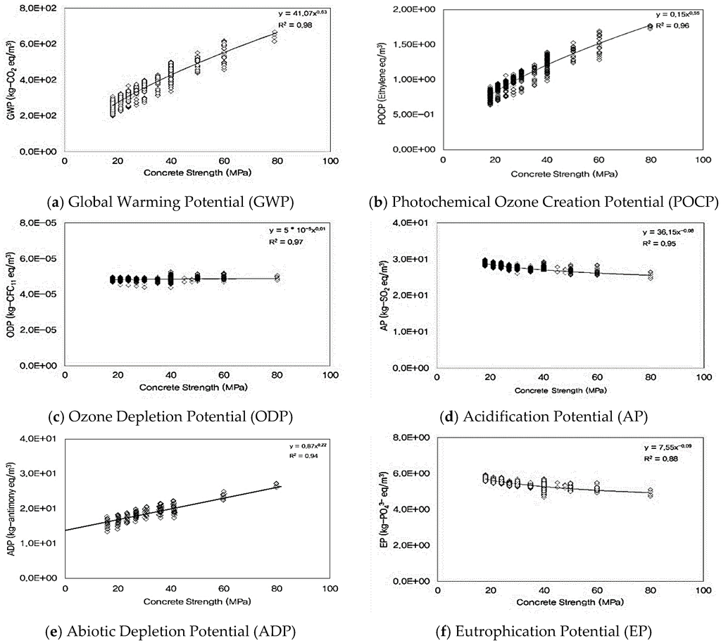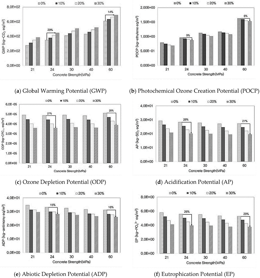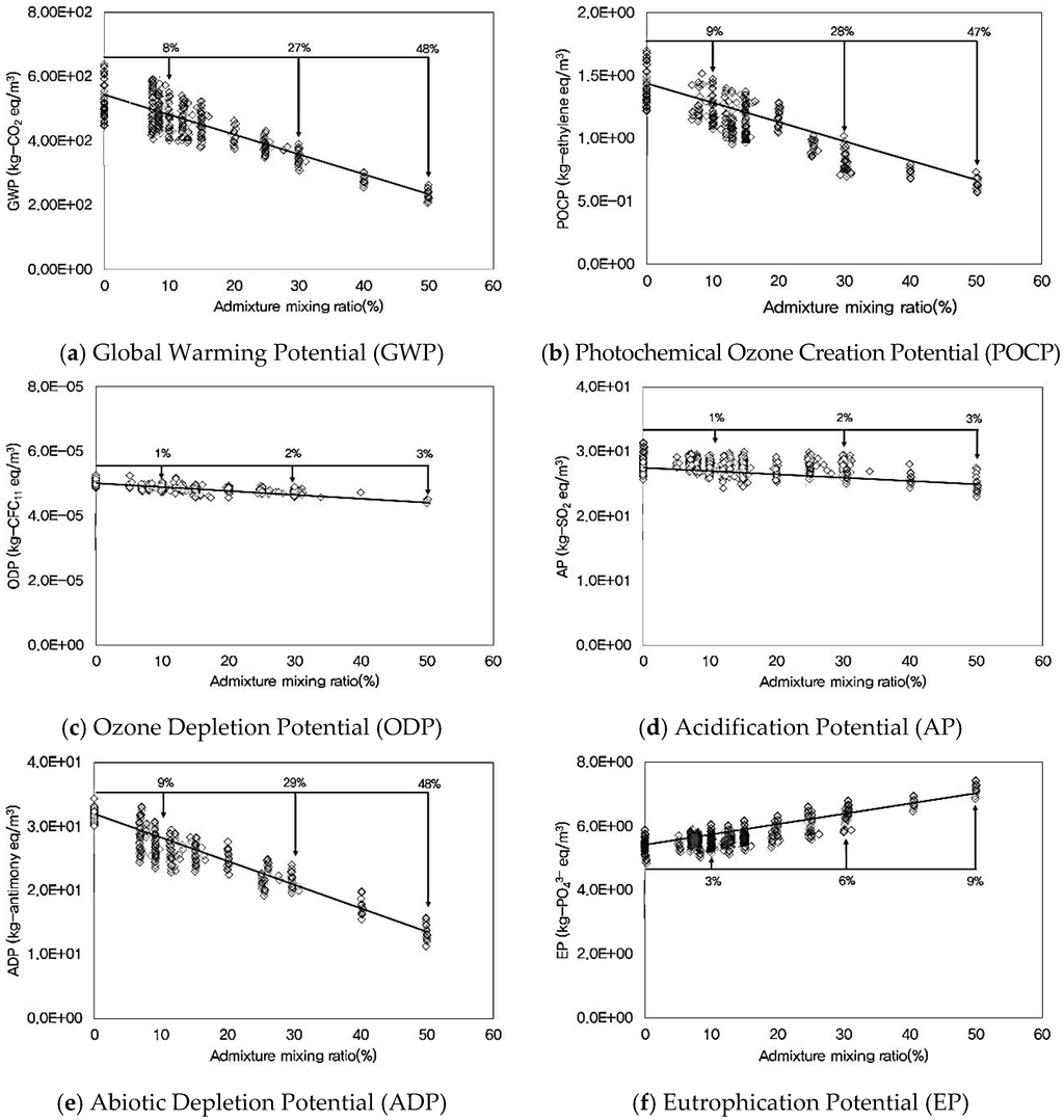| GWP | ADP | AP | EP | ODP | POCP | Cement | Aggregate | |
