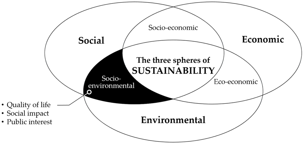 Recently, users and developers have started to realize that future wearable technology should evolve from its current state of only collecting simple physical activities or biometric data. Furthermore, prospects claimed by several researchers that wearable computers would not only improve the quality of life but influence all aspects of life have been realized today. The current wearable domain has attempted to improve the quality of life from sustainability viewpoints and adopt human-centered wearable applications and services for social public interest and safety beyond the concept of measuring physical body or environmental states while tracking and monitoring outcome data about various events which are changing over time, as mentioned previously. This approach may be explained by the model of Figure 3, which is based on the social ecological model [44,45]. In this regard, this chapter will discuss the concept of wearables in terms of sustainability.