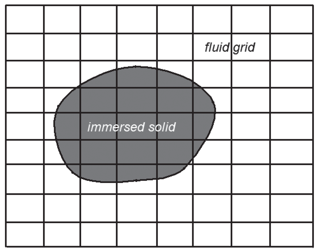 where and are the three components of fluid velocity and and are the components of the forcing velocity due to the immersed solid. The momentum source coefficient - is a large number, and is evaluated as the average of the three diagonal coefficient in the momentum equation. The presence of an immersed solid (impeller) in the flow field is modeled through a special forcing function. The ANSYS computational fluid dynamics software (CFX solver) automatically updates the mesh positions of the immersed solid at the beginning of each time step, and then sets up a list of fluid nodes that lie inside the immersed solid in order to drive the fluid velocity towards the immersed solid velocity.