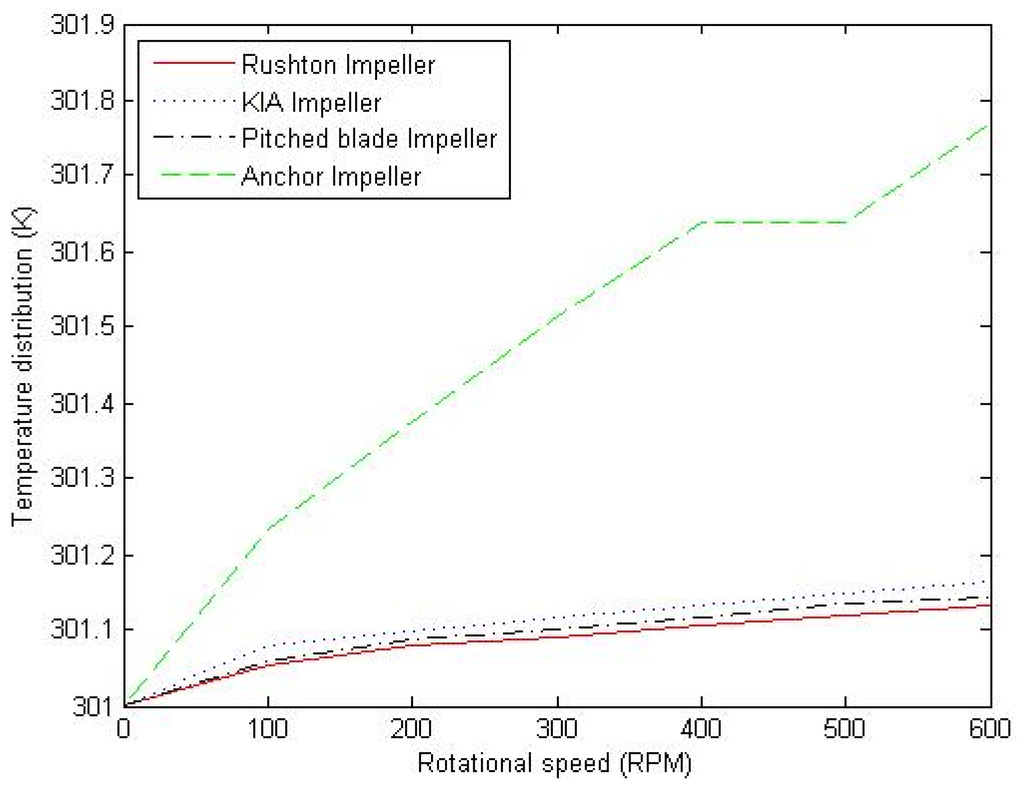 Effects of impeller rotational speed on temperature distribution within the homogenizer.