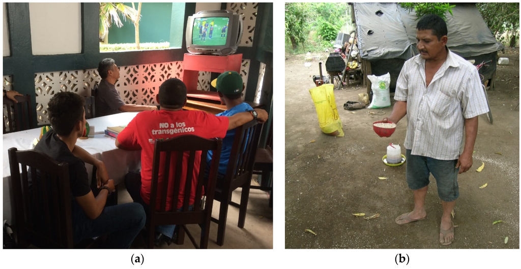 Selected perspectives on genetically engineered (GE) crops. (a) Some consider transgenic crops to be in conflict with their local culture; note the red t-shirt: “NO to transgenics.” It is worth noting that some applications of GE do not employ transgenesis and therefore may be more widely acceptable. (b) Many smallholders are understandably concerned about the restrictions patents place on seed saving and sharing. In developing economies, GE traits in the public domain are likely to be the most accepted.