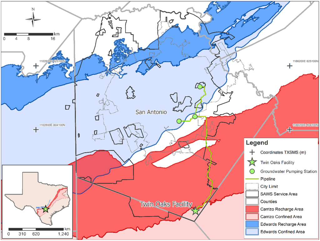 The Twin Oaks Facility in Bexar County, Texas. Data courtesy of SAWS, Texas Natural Resources Information System (TNRIS), Texas Parks and Wildlife Department (TPWD).