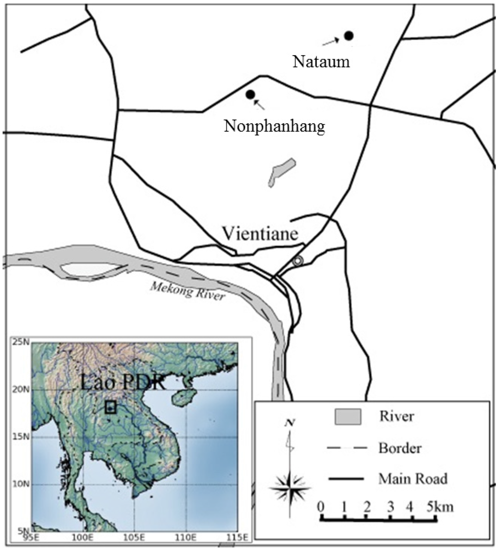 Locations of Lao People’s Democratic Republic, Vientiane, and the survey area.