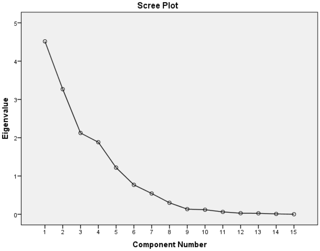 A hierarchical method, average linkage cluster analysis, was applied to the mean values of the physical and chemical variables for each site using the IBM SPSS version 22 (IBM: Armonk, NY, USA) statistical package. Principal component analysis (PCA) was used to determine the water quality parameters that contribute to the water quality variation between the upstream and downstream sampling points. The data was subjected to factor analysis to determine suitability of PCA. The correction matrix showed that the loadings were above 0.3. Liu et al. [15] categorized that factor loading of strong, moderate, and weak were based on values of >0.75, 0.75–0.50, and 0.50–0.30, respectively. The Kaiser-Meyer-Olkin (KMO) was in the range of 0.4 to 0.5 which was slightly lower than the recommended value of 0.6 [16], and Bartlett’s Test of Sphericity was in the range of 0.000 to 0.001 [17], indicating the suitability of PCA.