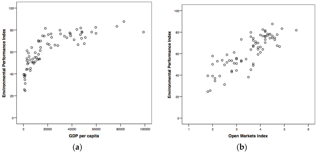 Finally, this paper could be of interest to policy makers as well, as it emphasizes the strong correlation between economic development—in combination with good governance—and environmental performance and, consequently, sustainable development. Overall, we argue that countries could turn to a more open economy and political system when introducing legislations and regulations, in order to achieve higher levels of environmental performance.