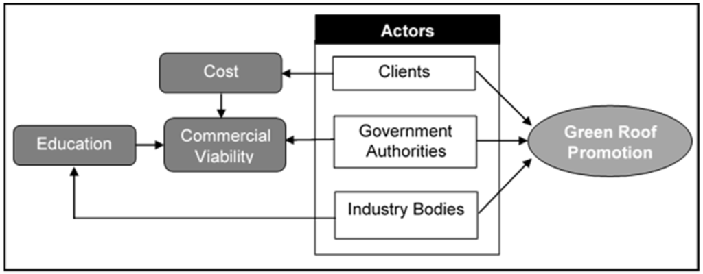 Rayner et al. [10] further clarify and provide weight to this theme by explicitly stating that policy conditions have previously been restrictive for the local green roof industry; “While the absence of policy incentives is a barrier to the widespread uptake of green roofs…”
