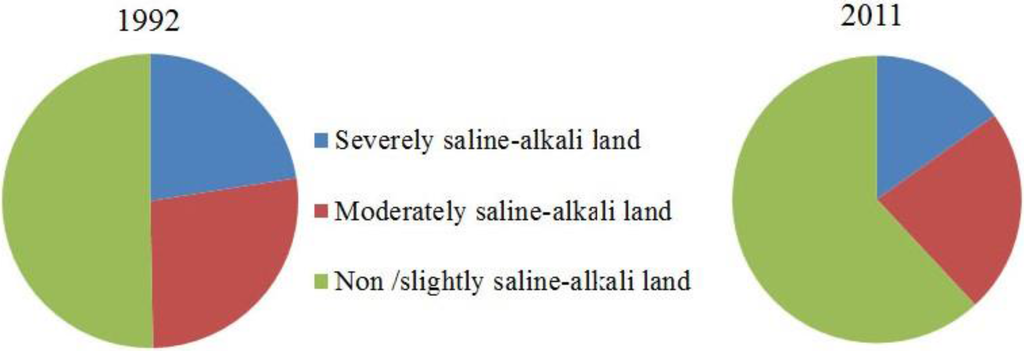 4.1. Temporal Changes in Arable Saline-Alkali Land