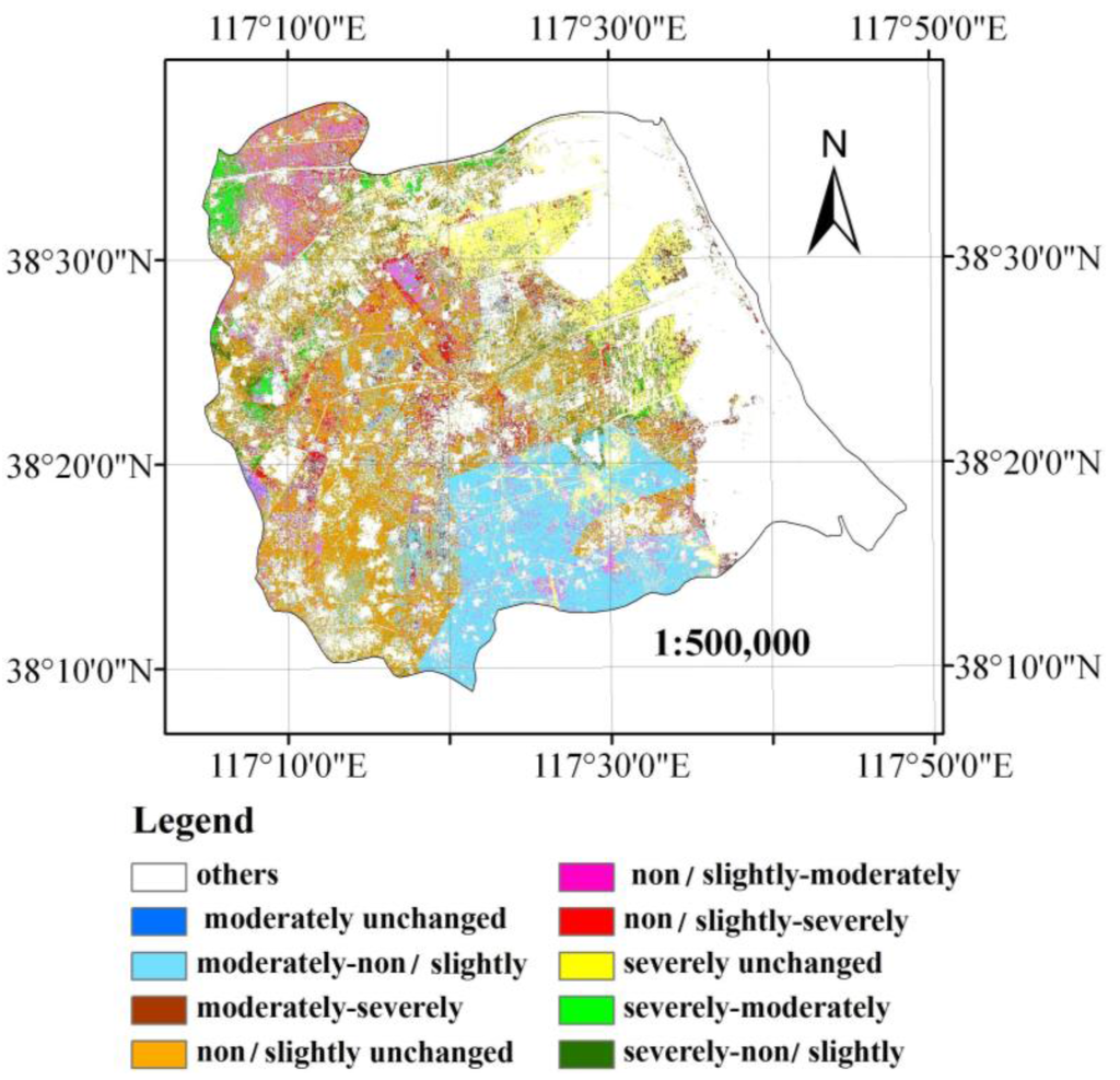 | Classification | Severely | Moderately | Non/Slightly | Residential Land | Marsh Land | Aquaculture | Salt Pot | Water |