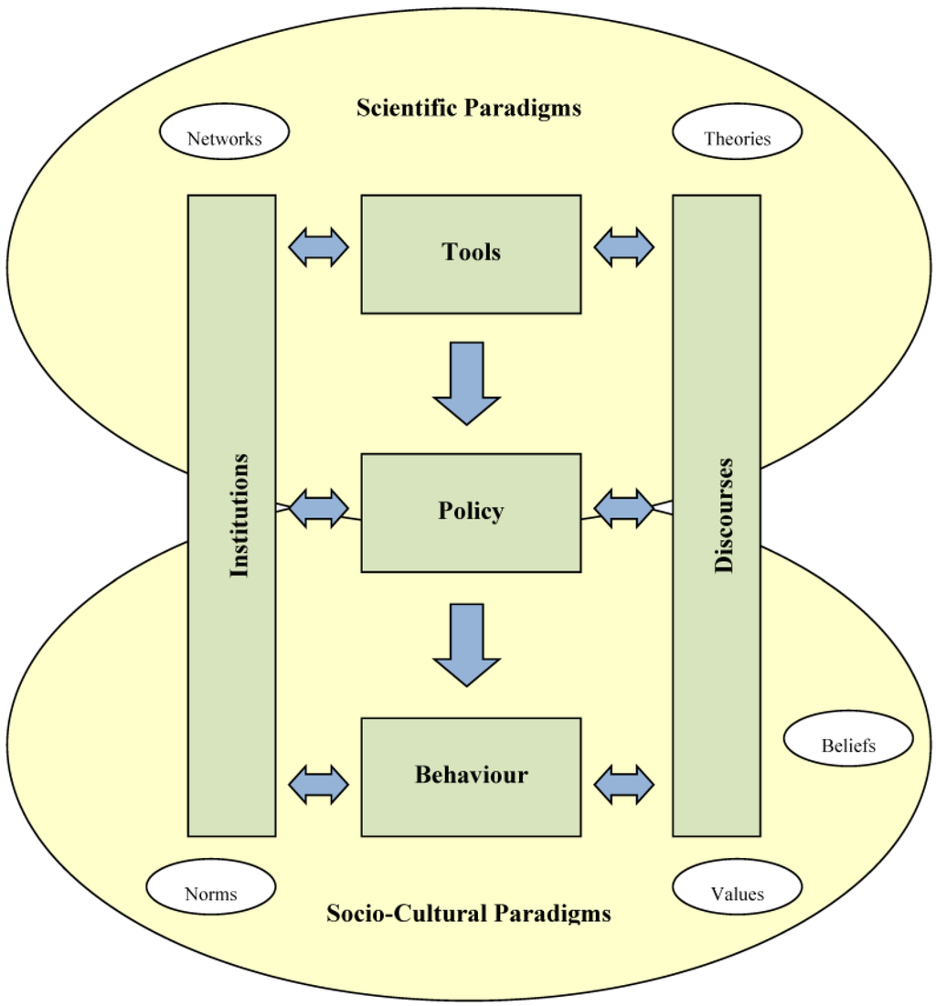 Where policy seeks to influence paradigms, an appreciation that all analysis is rooted in a paradigm is required. The analysis that informs the policy’s development will very likely have been framed within a certain professional paradigm or worldview. Furthermore, those undertaking the analysis will be likely to hold their own more personal worldviews of how society works and responds to challenges, which will likely be heavily but not exclusively influenced by their professional experiences. In addition, scientists working for policy makers (either employed or contracted as consultants) are often required to offer the design of their analyses for comment and peer-review, thereby needing to remain within an existing paradigm. Finally, the outcome of the analysis will need to be understandable, acceptable and of relevance to the policy makers who commissioned and funded the analysis, with the prospect of future work at stake. This makes policy that seeks to influence at the paradigm level both challenging and problematic, even in terms of knowing the extent that the analysis has managed to look beyond its own paradigm.