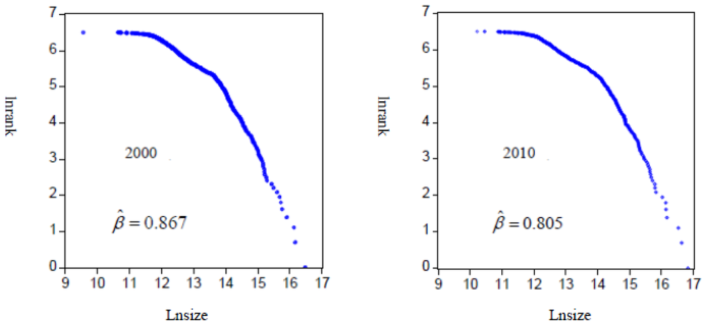 - Anderson, G.; Ge, Y. The size distribution of Chinese cities. Reg. Sci. Urban Econ. 2005, 35, 756–776. [Google Scholar] [CrossRef]
