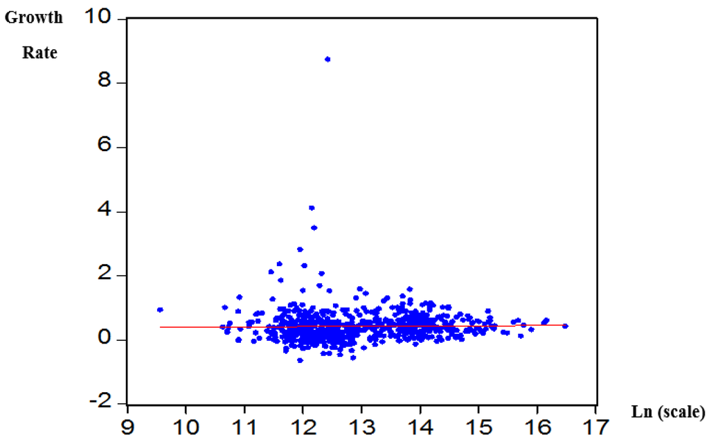 5.2. Empirical Test on Zipf’s Law and Gibrat’s Law