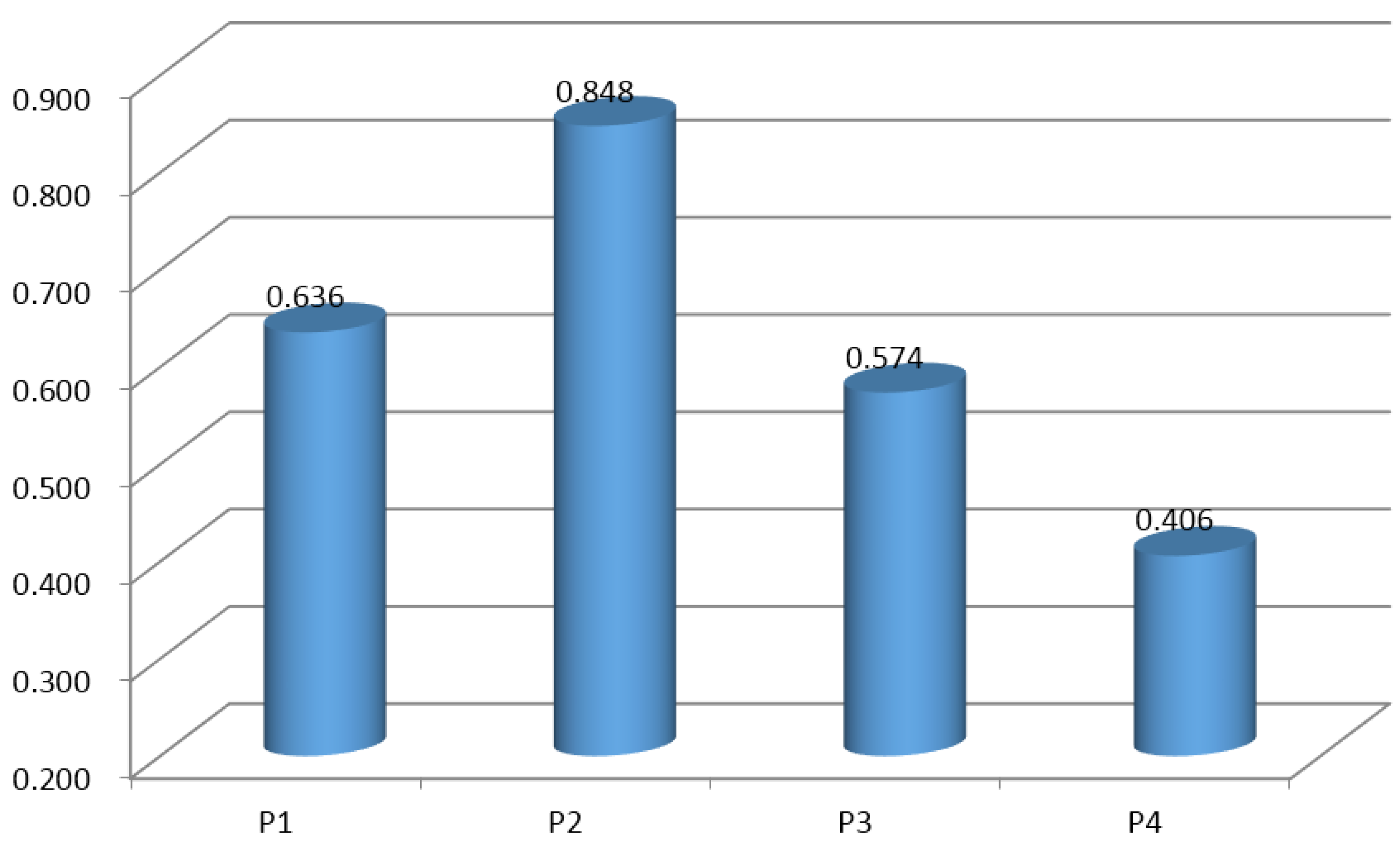 The ultimate evaluation priority of each programme is determined based on the closeness coefficient value, which is shown in Figure 3. The result indicates that P2 and P4 are the best and the worst in the list of priorities, respectively.