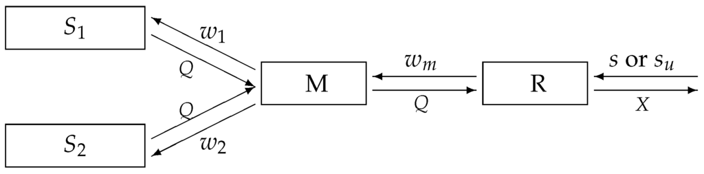 We model an assemble-to-order system involving two component suppliers, a single manufacturer and a single retailer under a single period. Before the beginning of the sales cycle (the primary inventory of the system is zero), the retailer works out Q units of ordering quantity according to the forecast of the market demands and places an order with the manufacturer in advance. After ordering, the retailer cannot change the quantity. The manufacturer makes its corresponding decision based on the order from the retailer and respectively orders Q units of necessary component , which is offered by the supplier . The final product A is assembled out of components and . Each supplier only provides one kind of component, and the assembly ratio of component to is . Supplier decides the wholesale price of component . Once the necessary components are delivered, the manufacturer starts to assemble product A immediately. After this is accomplished, it will be sent to the retailer at once. Suppose that the market demand of product A a X, and denote the CDF and PDF of X by and , respectively. This form of assumption has been used in Christos and George [], Anastasios et al. [] and He and Zhao []. The above supply chain can be modeled as in Figure 1.