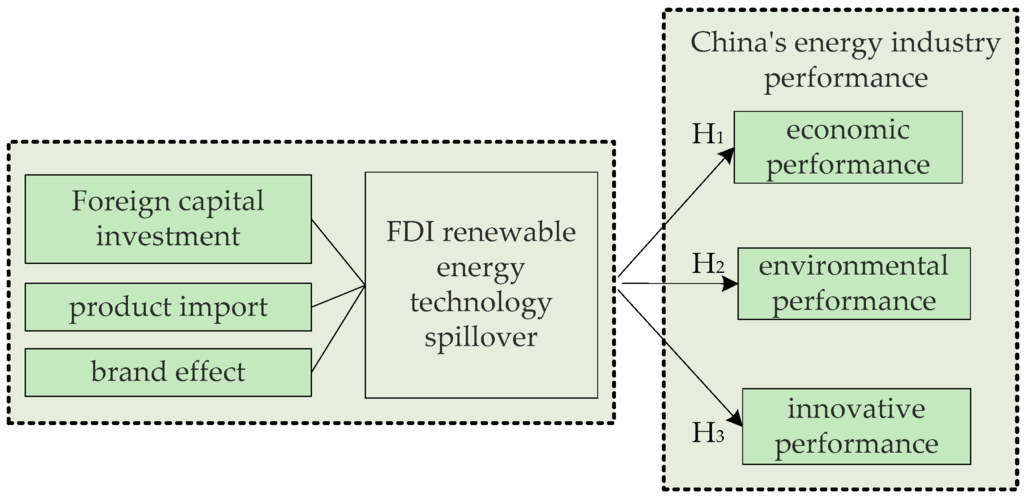 Based on a review of existing studies, the influencing factors of technology spillover are identified, i.e., foreign capital investment, product import and brand effect. Meanwhile, energy industry performance in China is characterized into economic performance, environmental performance and innovative performance. This section investigates how FDI renewable energy technology spillover influences energy industry performance in China.