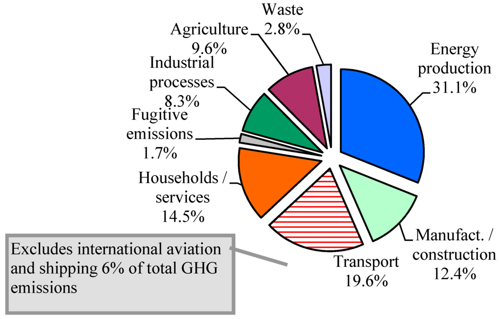 About distribution and evolution of GHG emissions by sector, an EEA study shows that more than a quarter of the GHG emissions in the EU-27 are due to the energy production (31.1%), while transport is the second source of GHG emissions, followed by manufacturing and construction processes (see Figure 1).