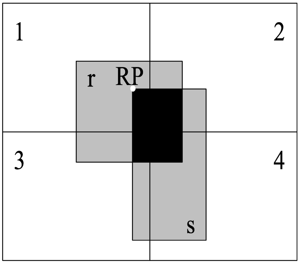 Many other works focus on parallel spatial join in distributed spatial databases. Niharika [29] is a parallel spatial data analysis infrastructure that exploits all available cores in a heterogeneous cluster. Spatial declustering in Niharika aims to assign neighboring tiles to the same node and reduce the data skew. However, the partition strategy in Niharika considers memory only; in other words, the recursive tiling is only based on the numbers of objects, which may cause uneven spatial join processing in each partition, especially when the number of objects of the two datasets are similar in the same partition. Skew-resistant Parallel IN-memOry spatial Join Architecture (SPINOJA) [30] focuses on the performance of the refinement stage by considering that the efficiency bottleneck is the processing skew caused by the uneven work metrics, including object size and point density. However, in this approach, objects ore decomposed by clipping against the tile boundaries in order to reduce processing skew on large objects, which could require additional storage space or calculation costs and increase the number of objects. In addition, SPINOJA focuses mainly on the running time of the refinement stage, but ignores the time complexity of the entire spatial join algorithms.