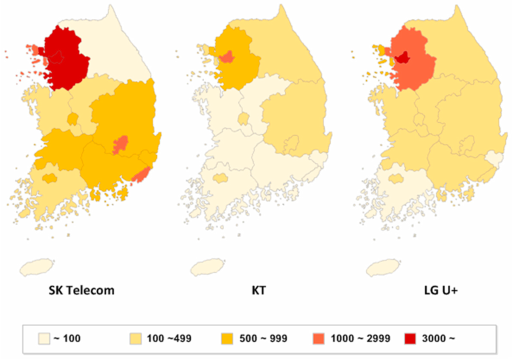 Map of the LTE base stations in South Korea [19].