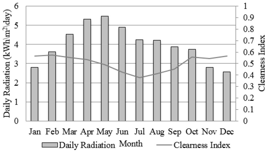 Monthly average daily solar radiation [20].