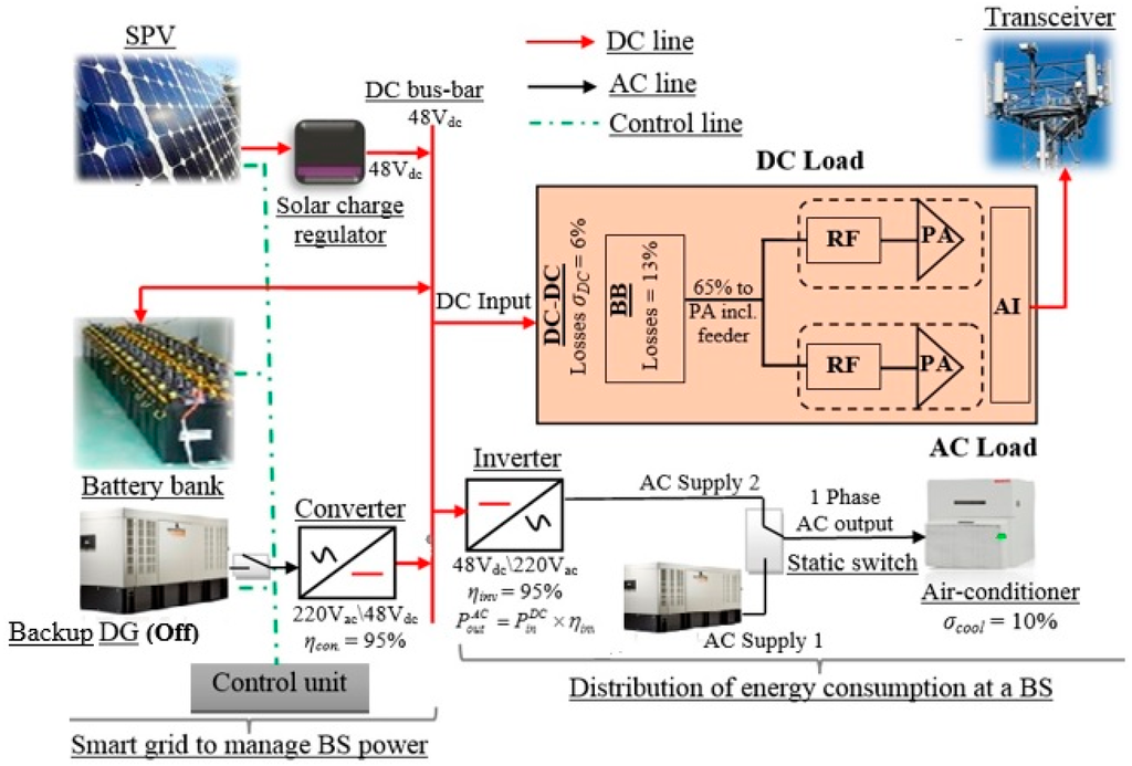 - Nema, P.; Nema, R.; Rangnekar, S. Minimization of Green House Gases Emission by Using Hybrid Energy System for Telephony Base Station Site Application. Renew. Sustain. Energy Rev. 2010, 14, 1635–1639. [Google Scholar] [CrossRef]