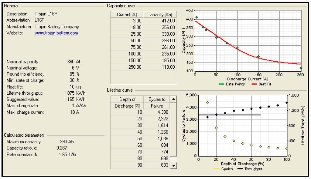 The key features of the “Trojan L16P” battery model.