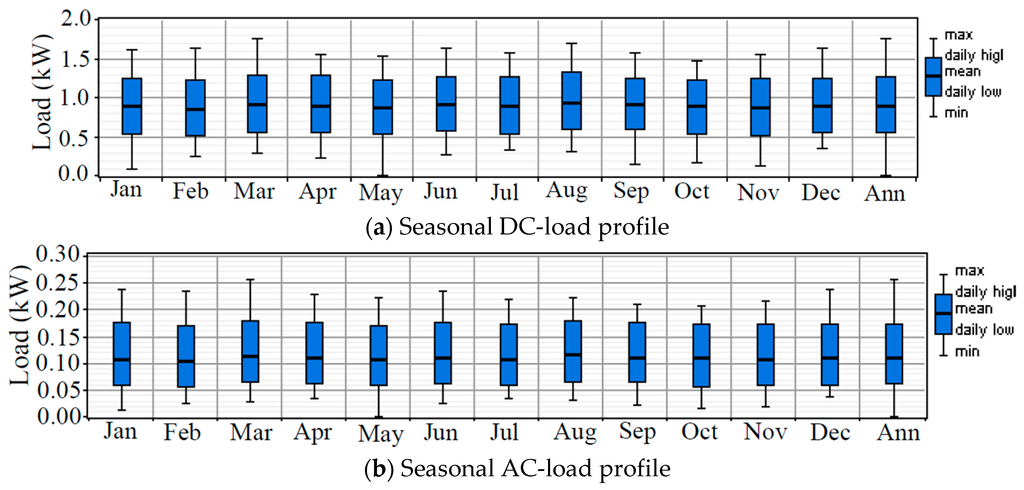 Seasonal load profiles. (a) DC-load profile; (b) AC-load profile.