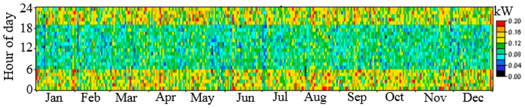 The LTE-macro base station load is critical for designing a reliable and efficient system. Sizing and modelling of the solar power system depend on the load profile. We used 24-h load values for 365 days for an accurate analysis. The seasonal load profiles for both the DC and AC loads are shown in Figure 9.