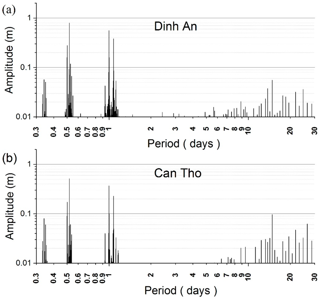 Water level amplitudes at Dinh An and Can Tho estimated by the Fourier analysis [].