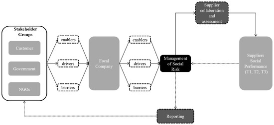 One critical point is the still prominent call for socially related research in SSCM. While this gap has been determined already in previous literature reviews [7,17] very clearly, it seems that academics struggled in finding socially related SSCM research areas or face other obstacles. Moreover, previous reviews usually have a cross-sectoral point of view, and thus their findings as well as implications suggest broad conclusions. In order to answer the three research questions of this study, the authors reviewed first the literature on SSCM to develop a conceptual framework, which consists of the major actors of the sustainable supply chain and its related barriers, drivers, and enablers for the implementation of social risk management. Therefore, the paper at hand reveals potential research areas in the relevant field in order to make socially related SSCM more comprehensive and hence attractive and accessible.