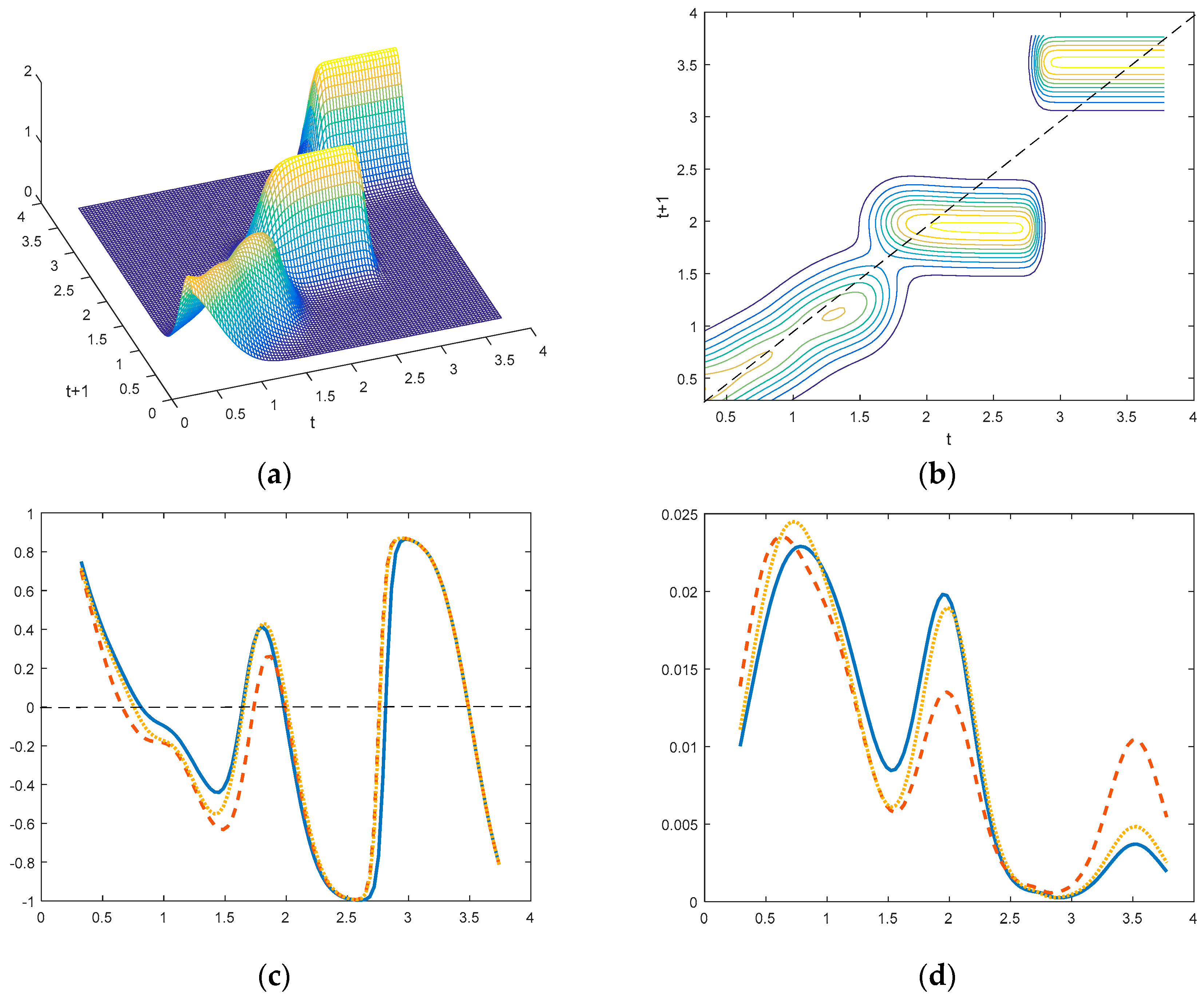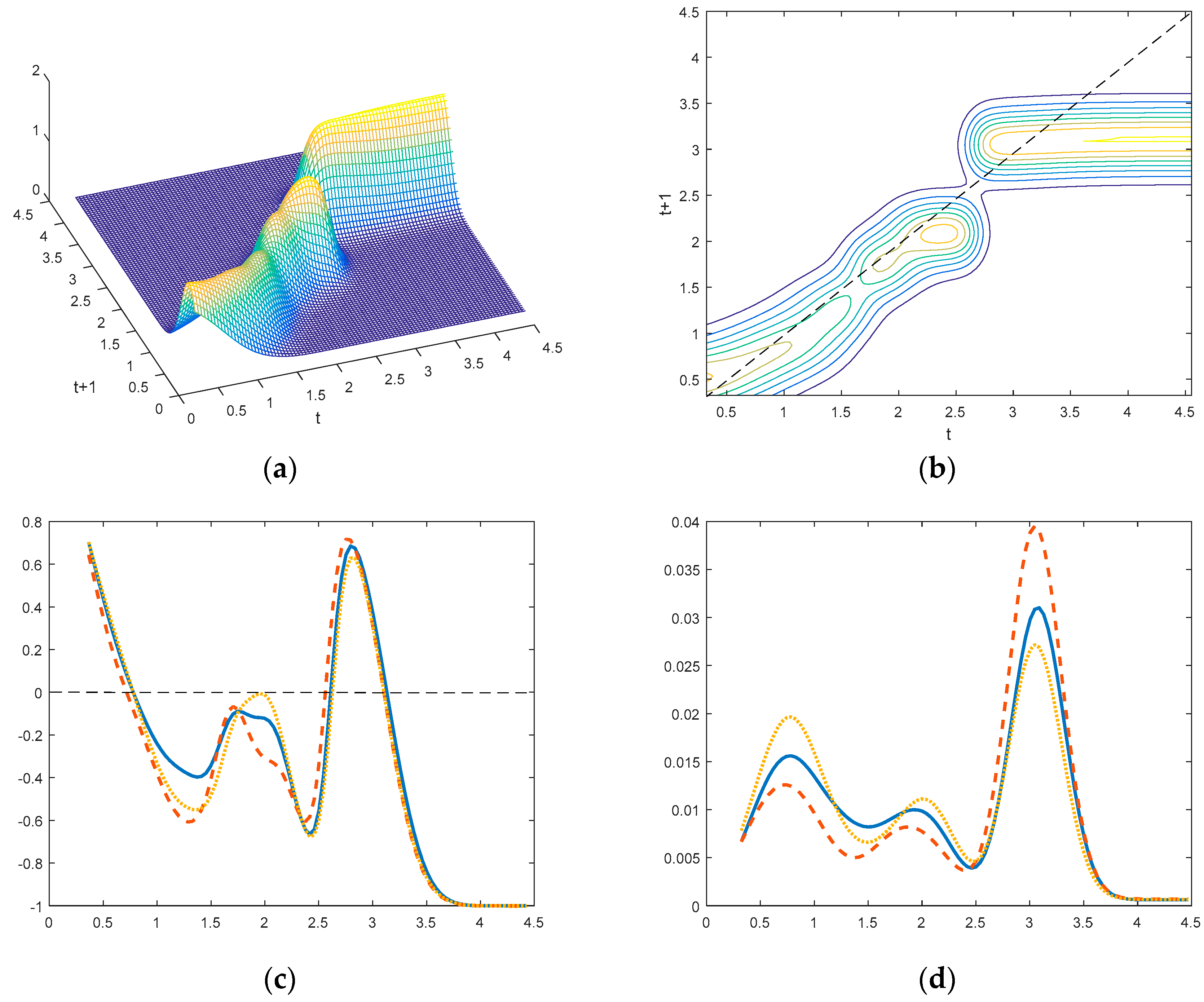 In the discrete approach, the transition dynamics is presented with a transition probability matrix. However, in the continuous approach, three-dimensional and contour plots are the most popular tools to show estimated results of transition probability. The three-dimensional plot can show the entire shape of the transition probability distribution, while a contour plot has the advantage of showing the deviation from the diagonal. Sometimes we need to know the net mobility tendency at each point. To gain more insight into the transition probability mass, we estimate the net transition probability (NTP) values at each point, which is an important index of mobility. The net transition probability index, denoted by , can be defined as: