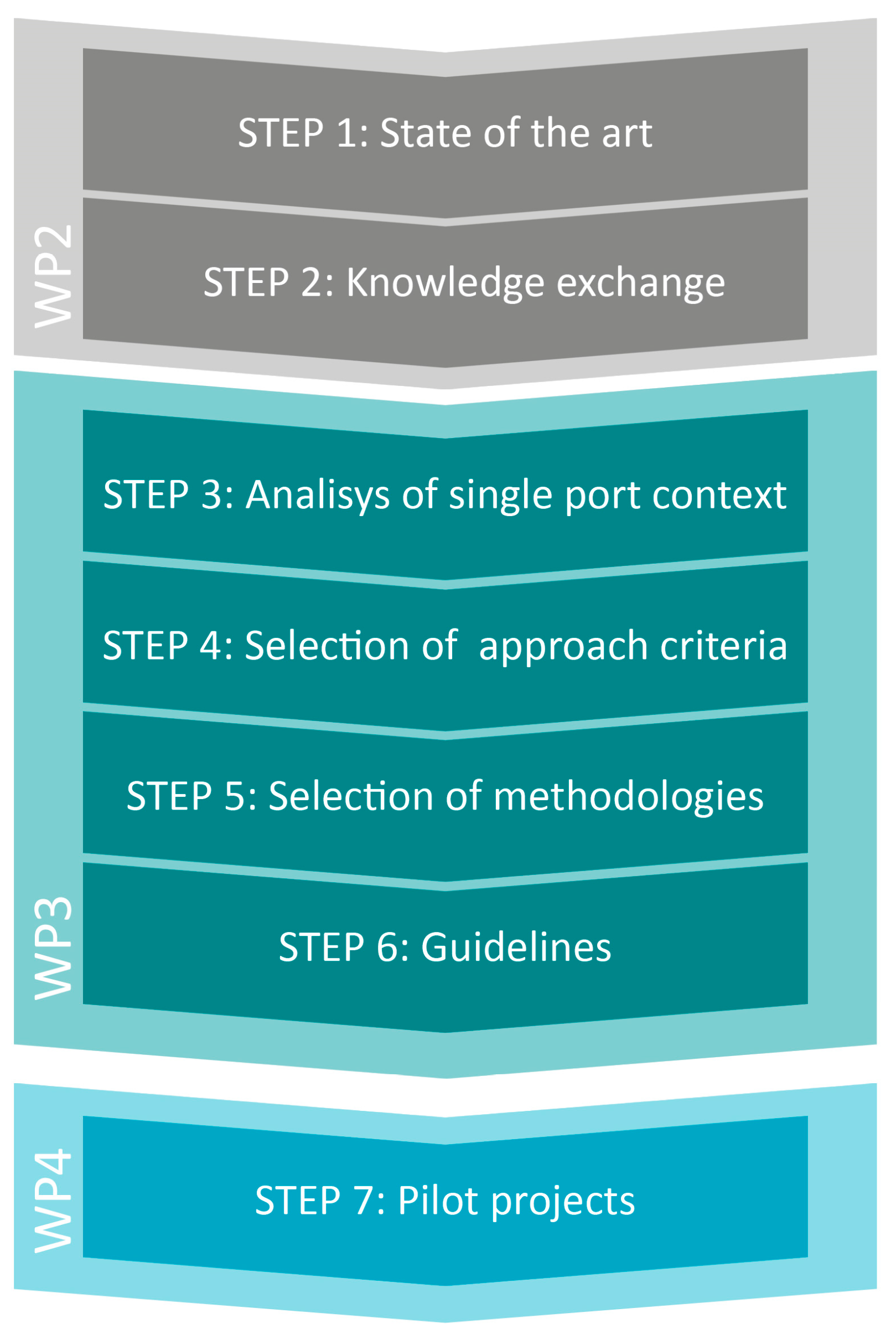 - WP3 “Tool’s implementation”, outlining a crucial phase of the project. In fact, all collected and shared information, methodologies, technologies and practices outlined in WP2 represented the basis for the definition of a specific methodological approach for the sustainable management of ports. In this way, in order to define the starting point for the build-up of the guidelines, a detailed study on real port contexts and surrounding urban areas appeared to be significant. Hence, specific analysis of the four MESP port territorial areas (Aqaba, La Spezia, Tripoli and Patras) have been conducted, collecting information particularly on trade, logistics, transport, mobility and future territorial planning. All this led to the final outcomes of WP3, the “Roadmap on Sustainability Criteria: Guidelines for Port Environmental Management”, a simple and easy tool addressed to professional figures of the Mediterranean basin port public administrations, offering best-practice approaches to a sustainable management of harbors.